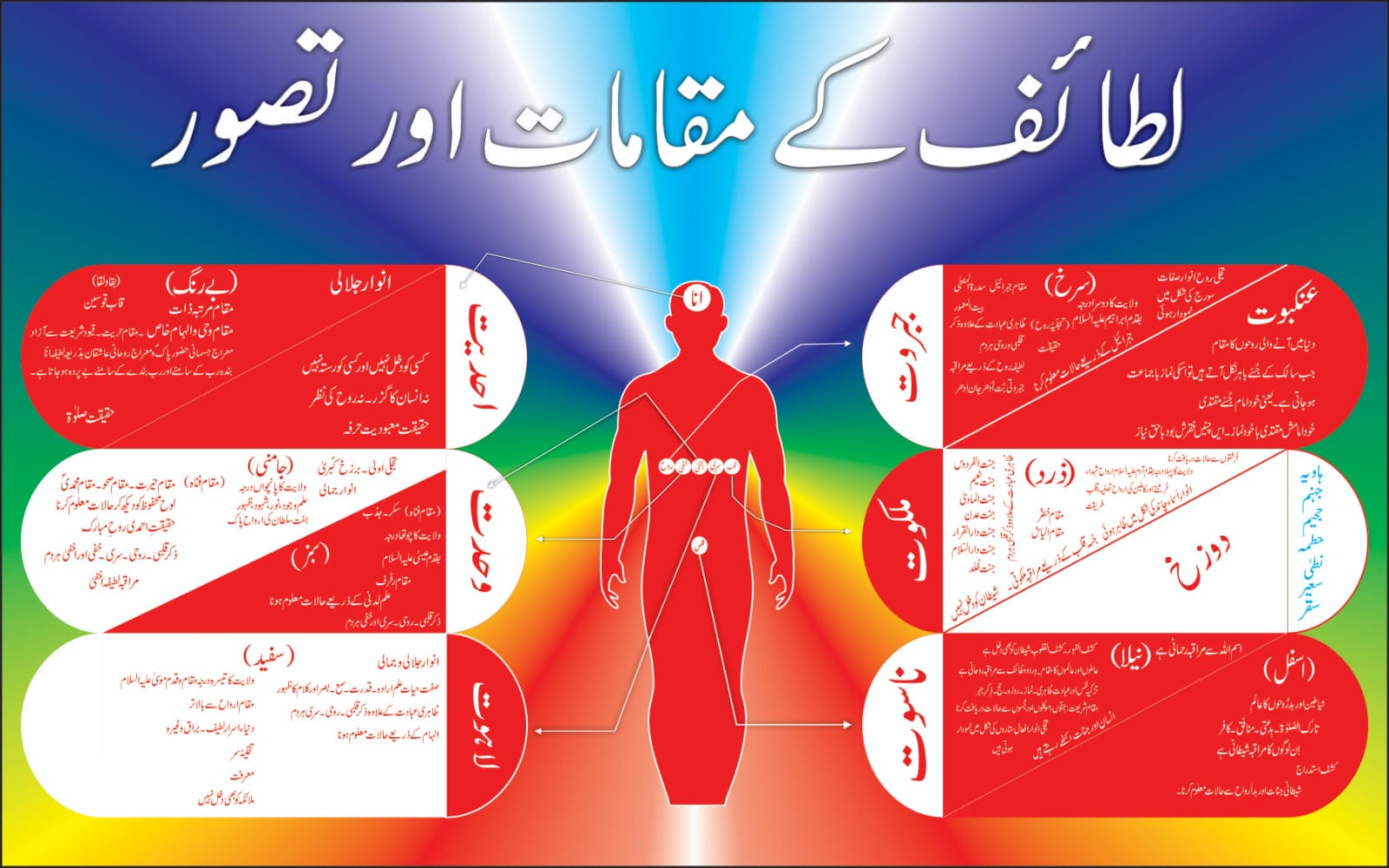 ہر انسان کے اند ر اللہ نے سات روحانی مخلوقات رکھیں ہین اور ان کے ساتھ نو(9)نائب ہیںیعنی ان کی کل تعداد 16 ہے۔ اس نور سے یہ پرورش پاتی اور پروان چڑھتی ہیں اور پھر اس قابل ہو جاتی ہیں کہ اس کو باطنی طور پر چھوڑ سکیں۔یہی وجہ ہے کہ لوگ بزرگوں کو کئی جگہ پر بیک وقت دیکھتے ہیں۔